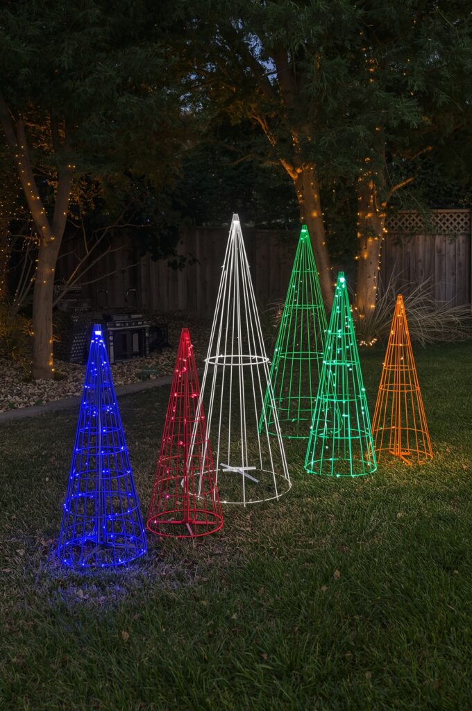 These sleek, cone-shaped LED trees come in various sizes and colors. Group them together on your lawn for a futuristic yet minimalist light display.