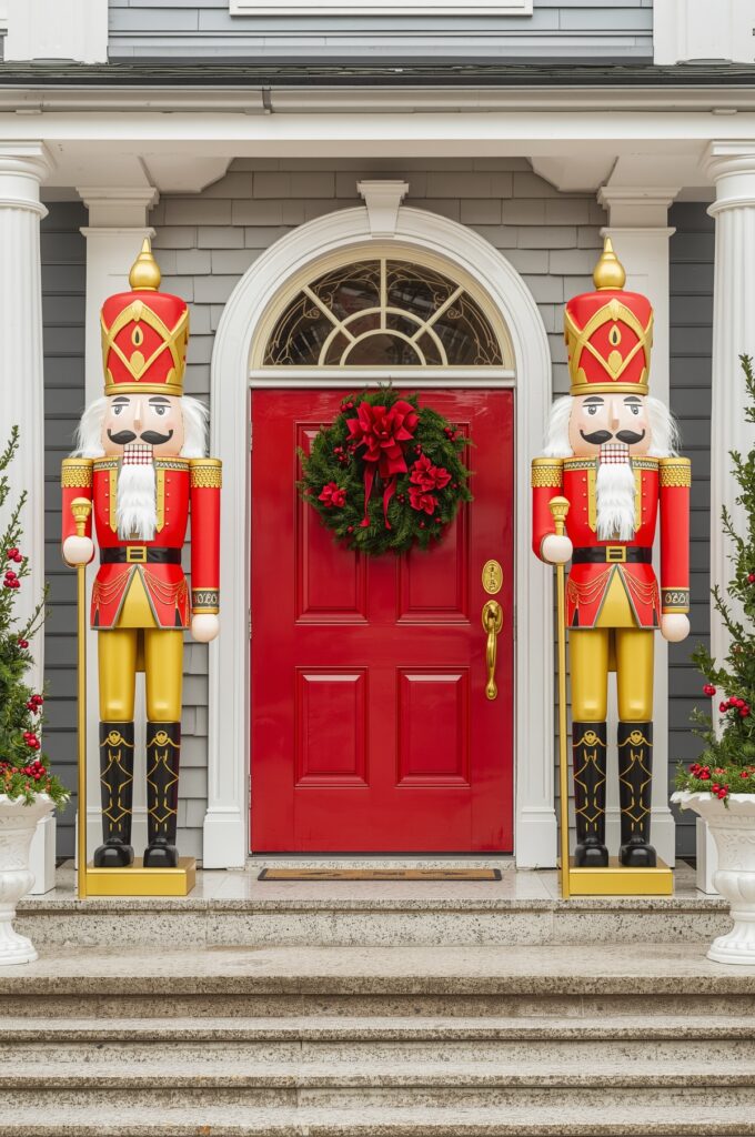 Standing guard on either side of your front door, life-size nutcrackers add royal grandeur to your Christmas setup. Choose bright, colorful designs or matte gold for a modern, elegant twist.