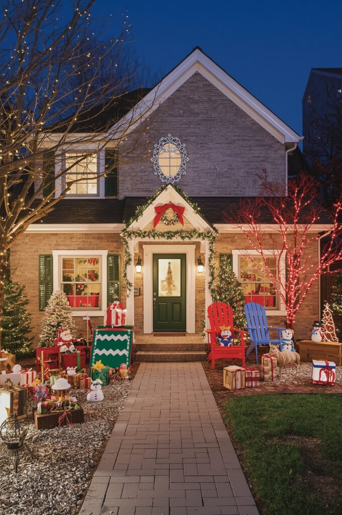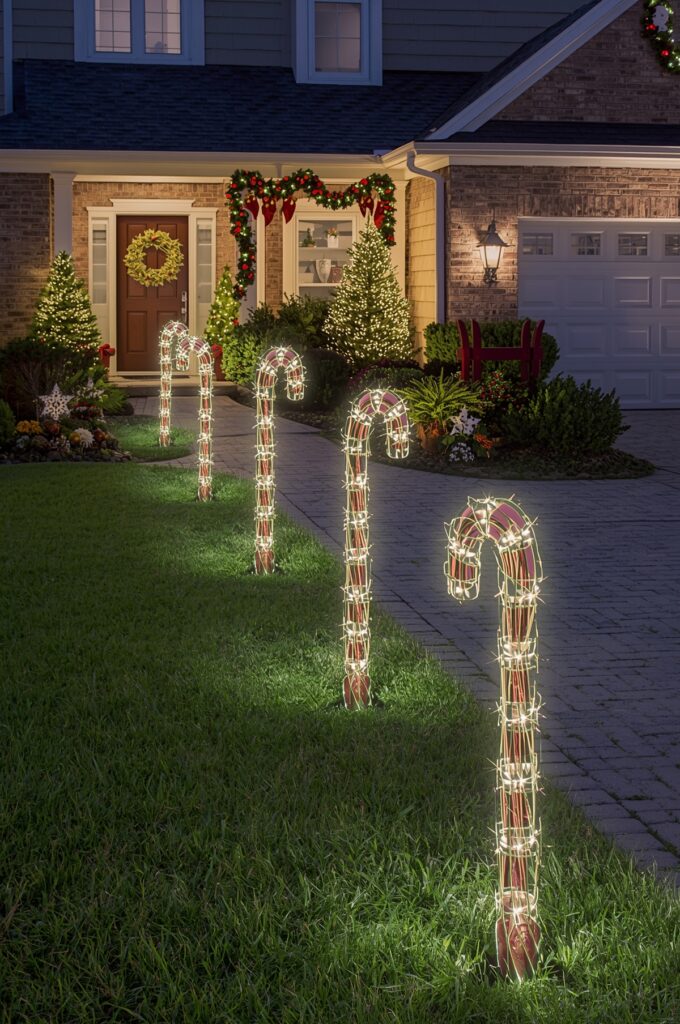 Line your driveway or walkway with glowing candy canes, lanterns, or LED snowflakes. This not only guides guests to your door but also adds a magical glow to your front yard at night.
