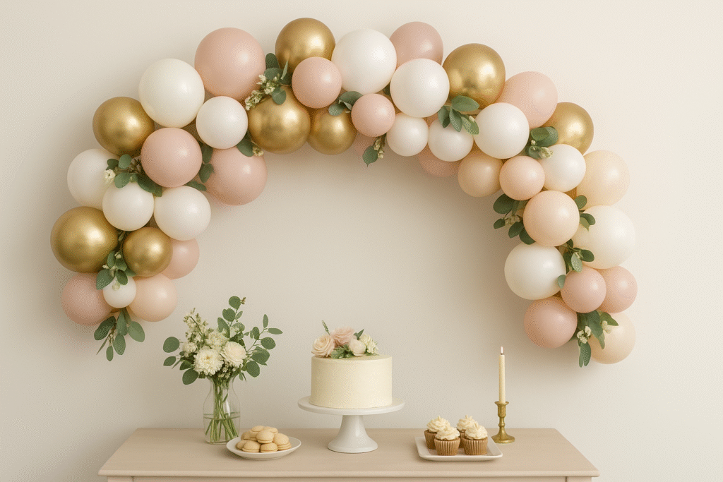 Balloons aren’t just for kids. For women’s parties, create chic balloon garlands using metallic, pastel, or nude tones. Add greenery, flowers, or tassels to elevate the look.