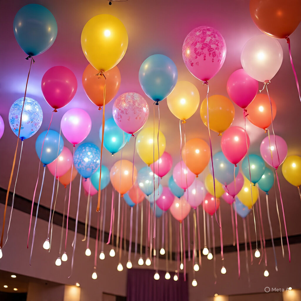 Fill balloons with helium and let them float to the ceiling, adding dangling ribbons or lights for an extra touch.