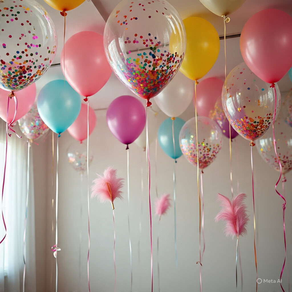 Fill transparent balloons with confetti or feathers. They sparkle beautifully under light and add a festive element to the décor.
