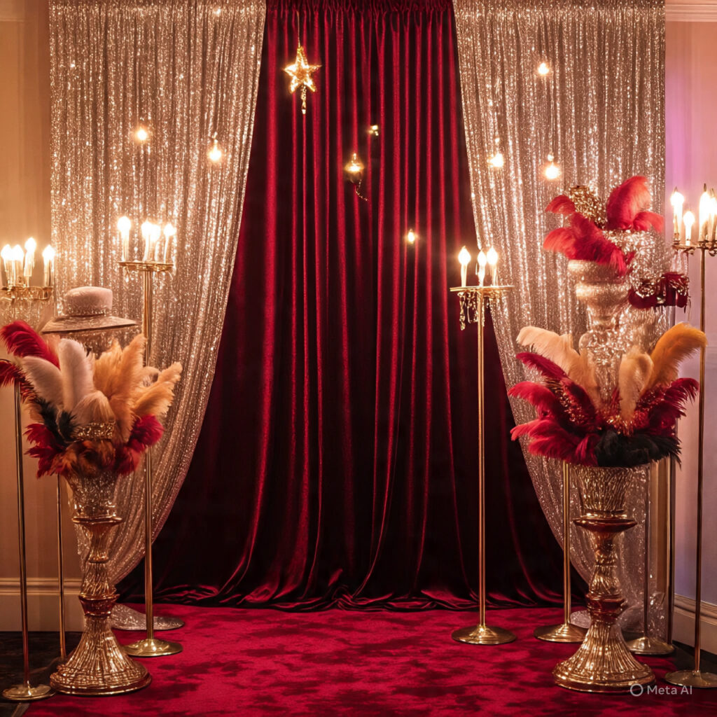 Finish strong with a themed photo booth. Offer glamorous props like feather boas, hats, or sparkling tiaras to make memories even more fun.