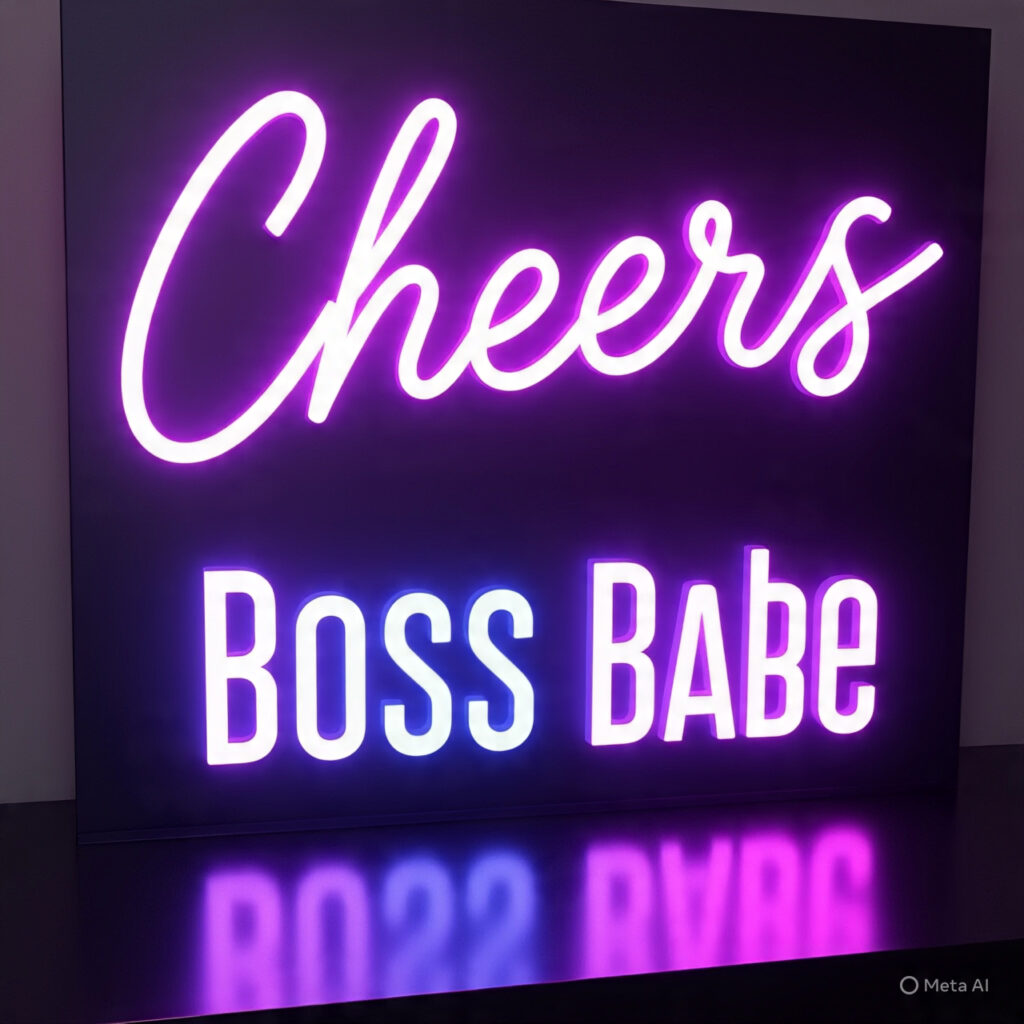 Custom neon signs with phrases like “Cheers”, “Boss Babe”, or the guest of honor’s name make unforgettable statement pieces.
