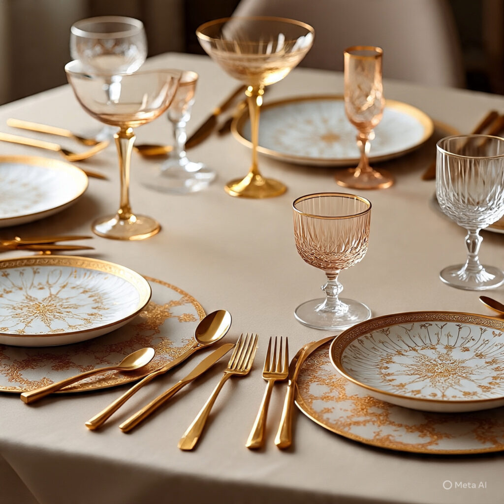 Use gold, rose gold, or silver cutlery, plates, and glasses. Disposable options are available that look incredibly stylish.