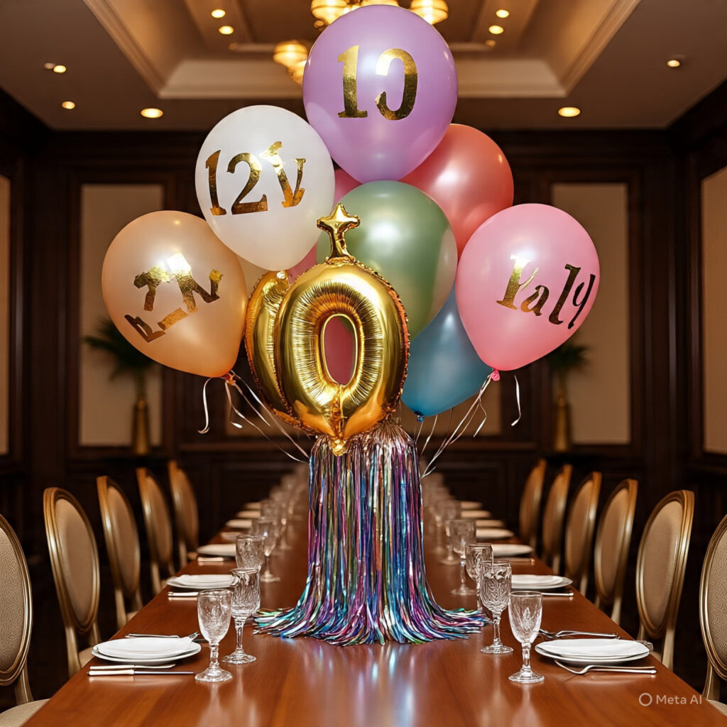 Oversized balloons with tassel tails or numbers for milestone birthdays always impress guests.