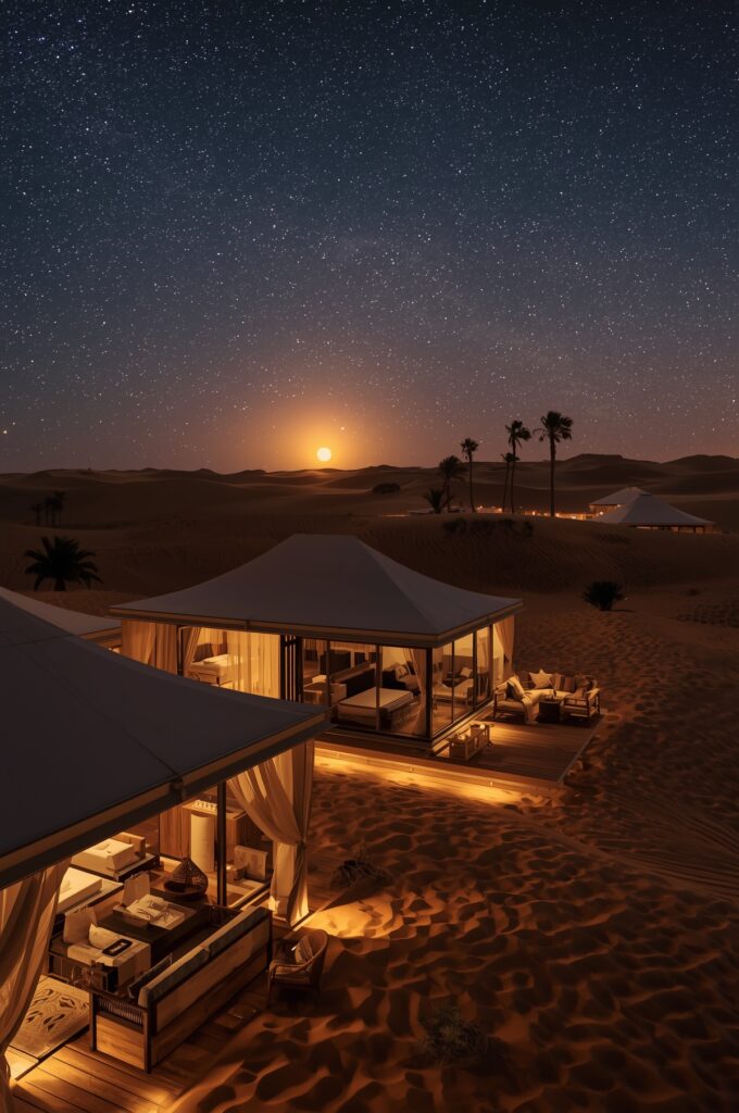 Think Bedouin-style tents reimagined with plush interiors and modern amenities.