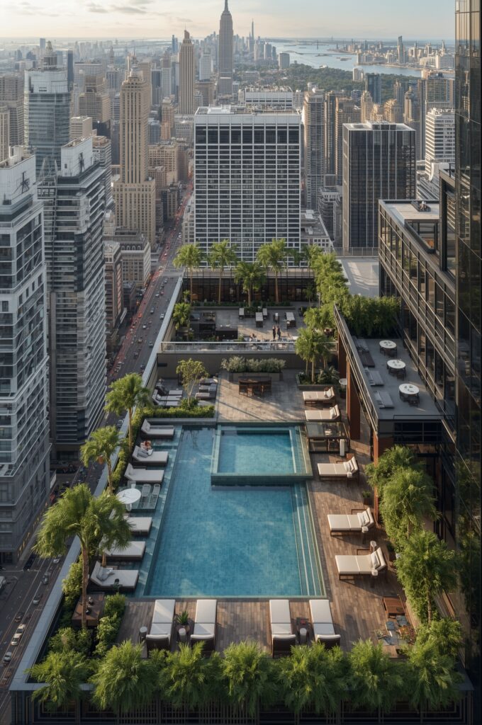 Luxury resorts in skyscrapers with rooftop pools and panoramic city views are redefining urban escapes.