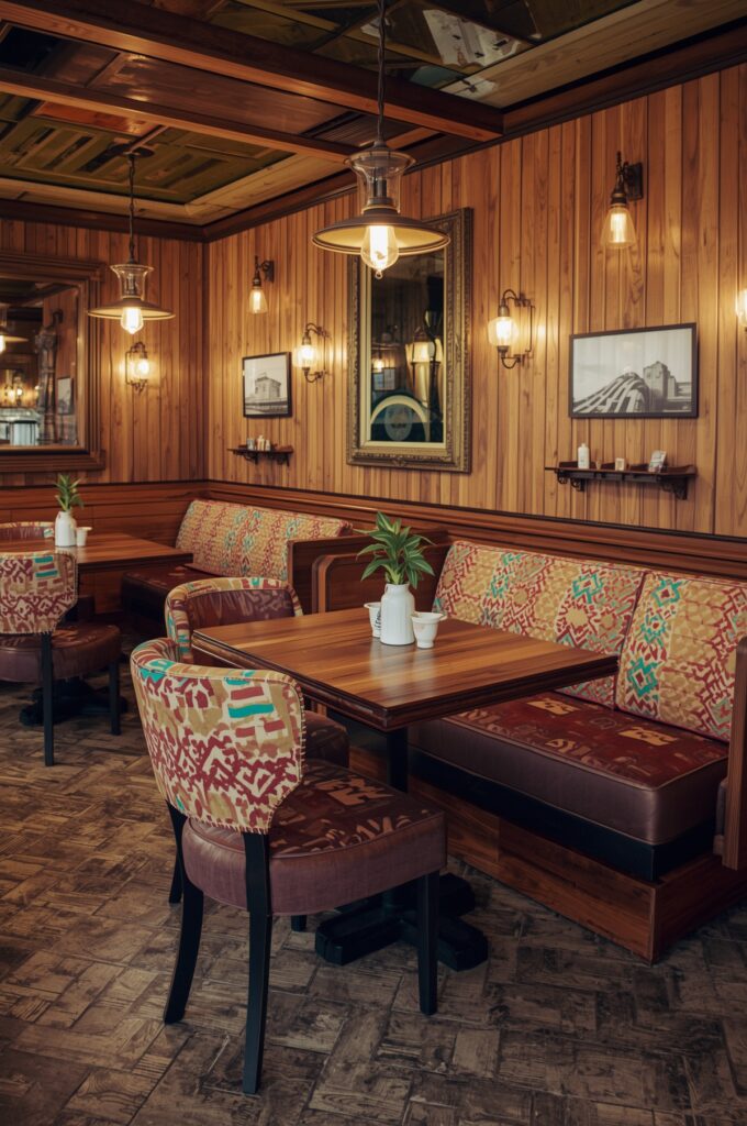 Warm wood tones, funky patterns, and vintage lighting are making a comeback. A retro-inspired restaurant design gives a nostalgic yet fresh appeal.