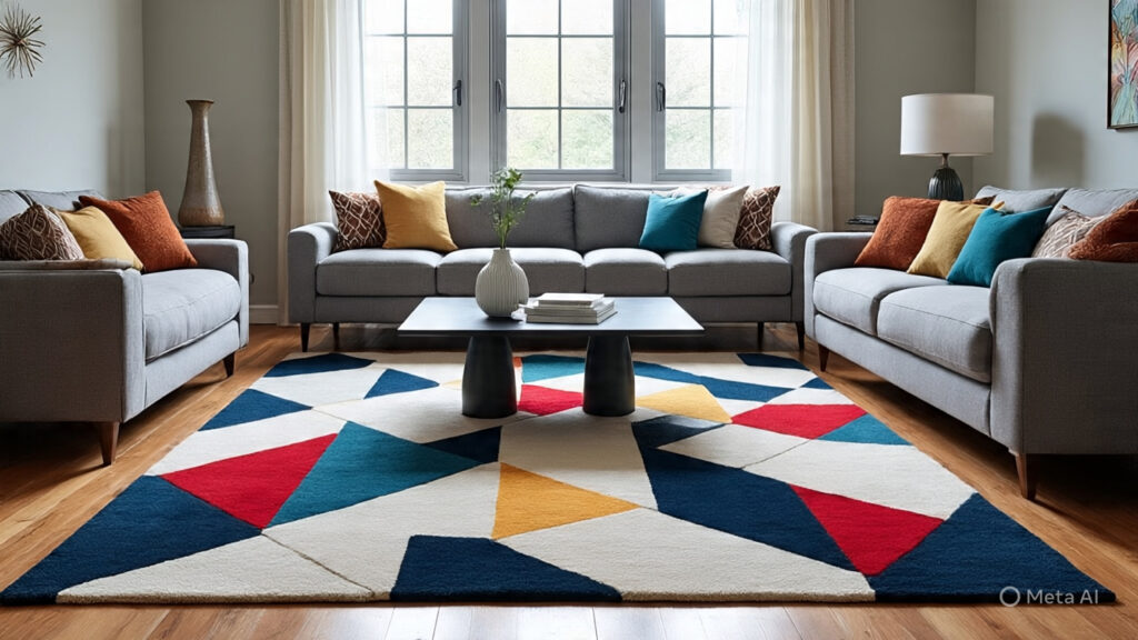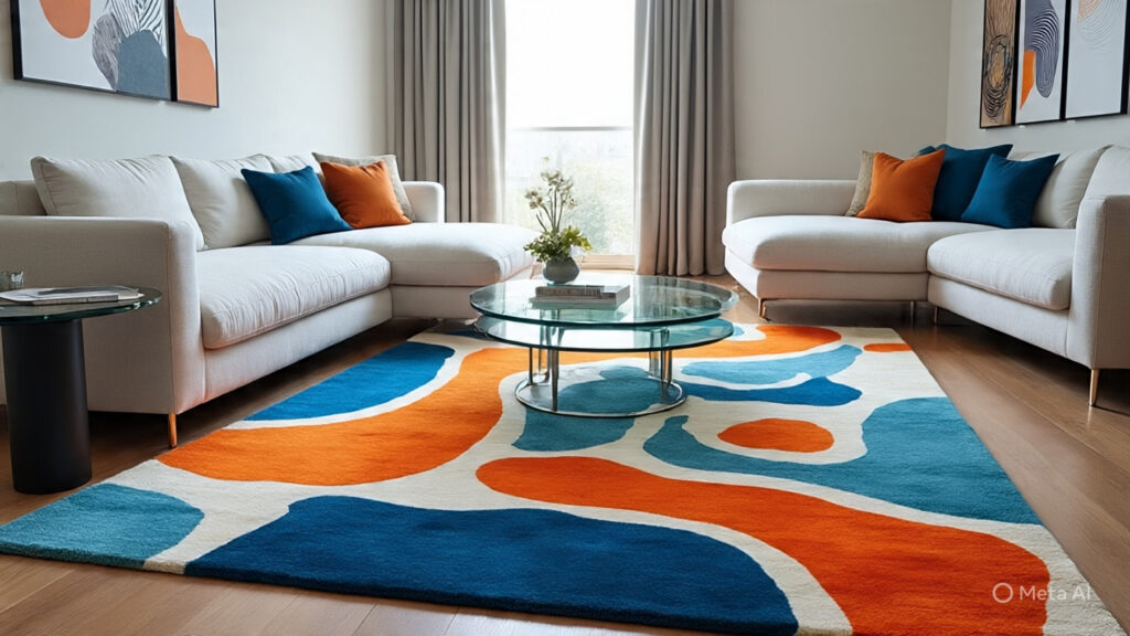 Abstract rugs act as functional art for your floor. They work especially well in modern or eclectic living rooms where creativity shines.