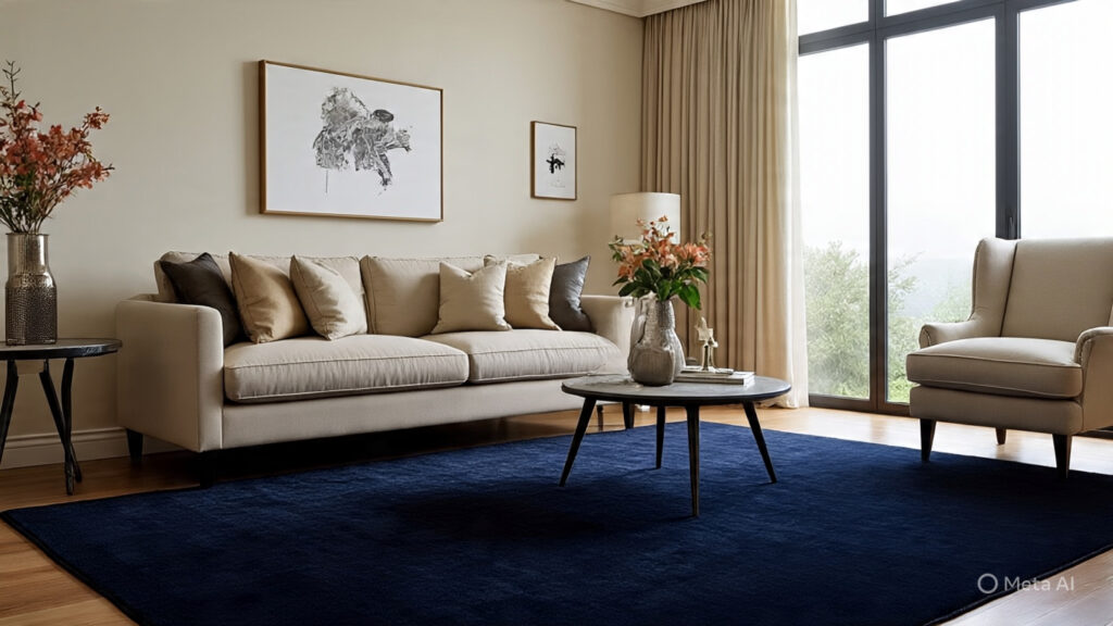 A deep navy, charcoal, or black rug creates a moody and elegant vibe. Pair it with light walls and furniture for striking contrast.