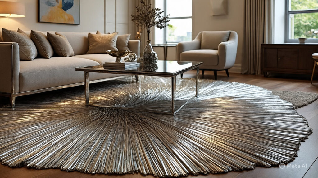 Rugs with metallic threads or subtle shimmer can reflect light and add a touch of glamour to your living room without being overpowering.