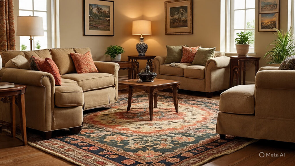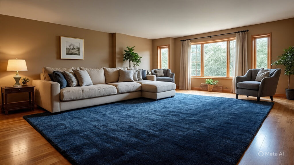 An oversized rug can anchor a large living room, ensuring all furniture feels connected and the space looks cohesive.