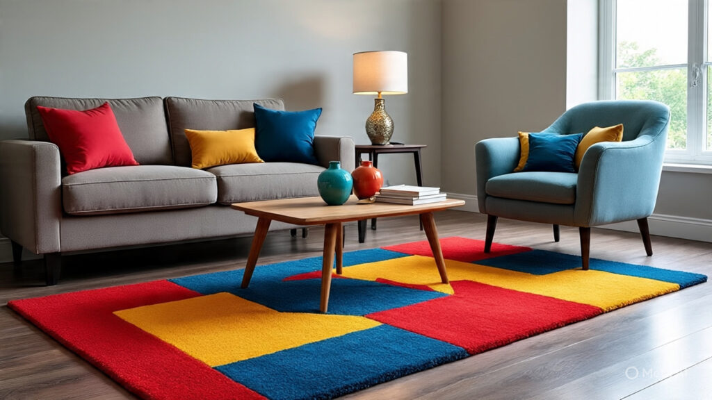 Color-blocked rugs use bold contrasting shades to create a lively, modern feel. Perfect for contemporary homes, they bring instant personality.
