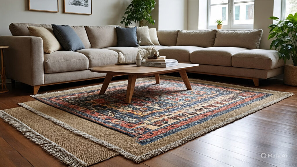 Eco-friendly and durable, jute or sisal rugs bring organic texture to your living room. Their earthy tones complement minimalist and rustic interiors beautifully.