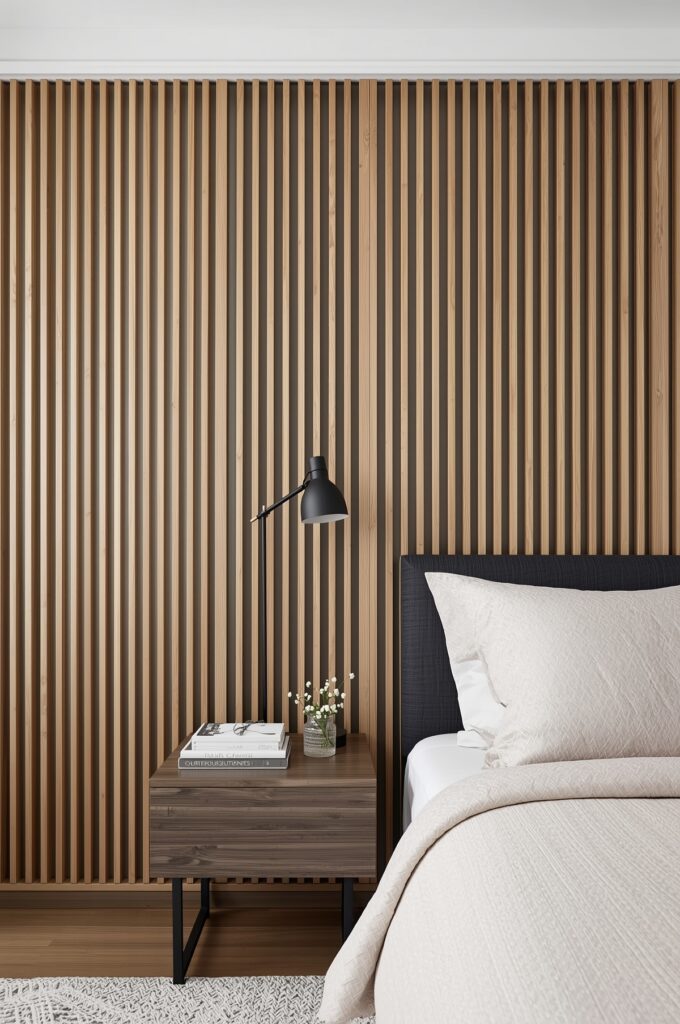 Wooden slats arranged vertically or horizontally create a sleek, modern vibe. Perfect for accent walls in living rooms or bedrooms, they add warmth and texture while keeping the space contemporary.