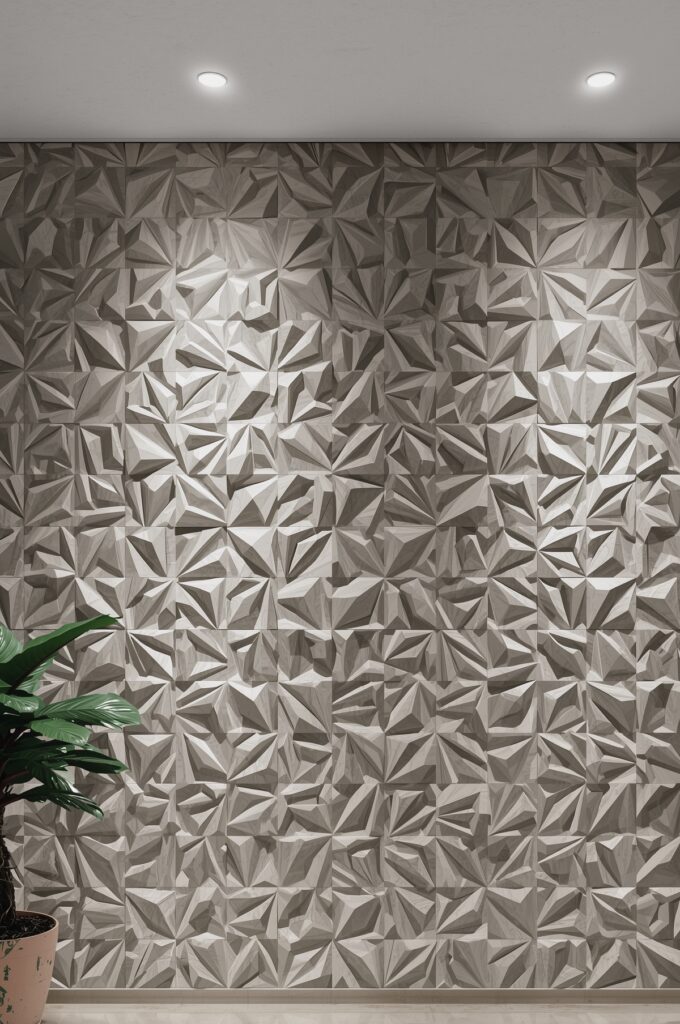 Geometric shapes in 3D designs are trending in 2025. These panels create a dramatic focal point and add dimension to your interiors. Pair them with soft lighting to highlight their depth.