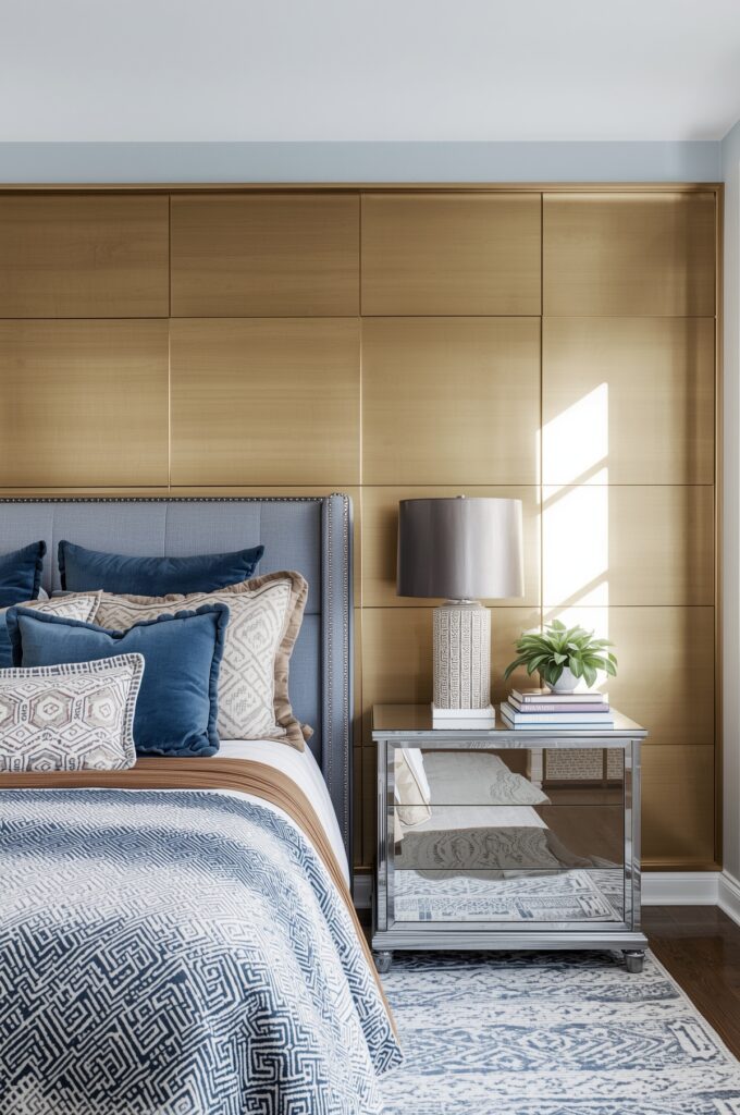 Brushed gold, bronze, or silver-finish panels are perfect for making a bold design statement. They instantly uplift any space with a high-end, glamorous look.