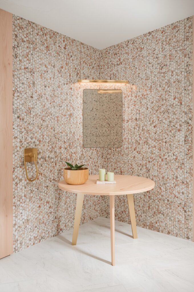 Terrazzo isn’t just for floors—it’s trending on walls, too. Colorful terrazzo-inspired panels add a playful yet chic touch to kitchens and bathrooms.