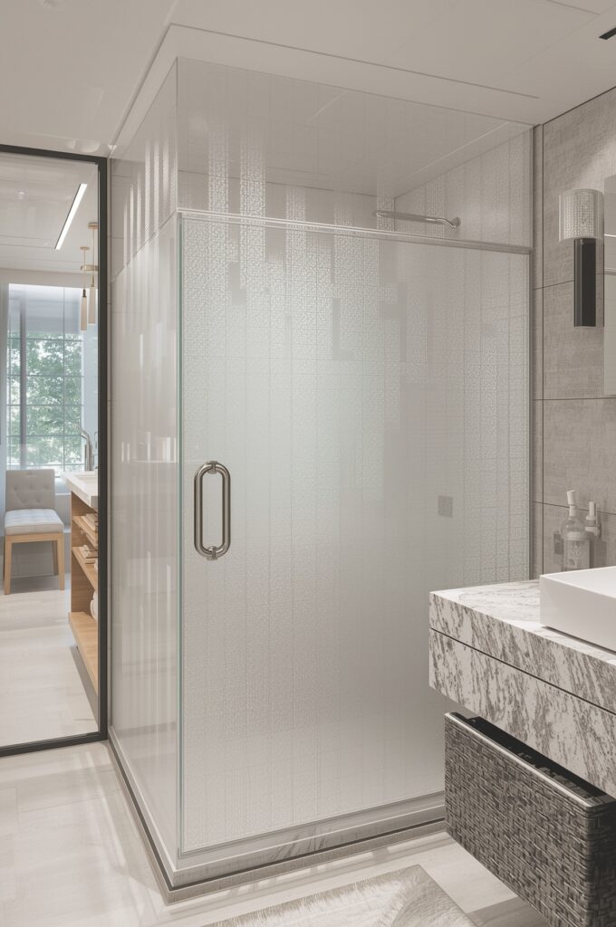 Frosted, tinted, or textured glass panels bring elegance and modernity. They allow light to pass through while maintaining privacy, making them suitable for bathrooms and offices.