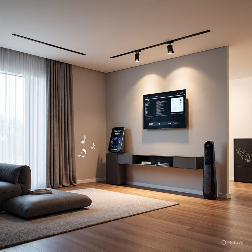 Technology that controls lighting, temperature, entertainment, and security through voice or mobile app integration.