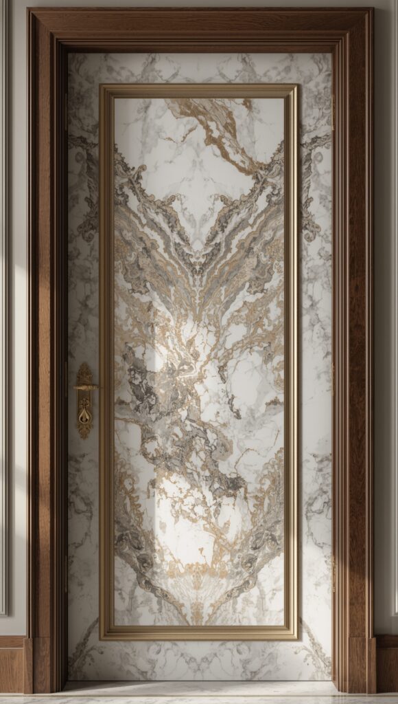 Marble is a rare choice for doors — but when executed well, it offers unmatched luxury. Often combined with a steel core and fine detailing, marble panel doors are heavy, bold, and breathtaking.