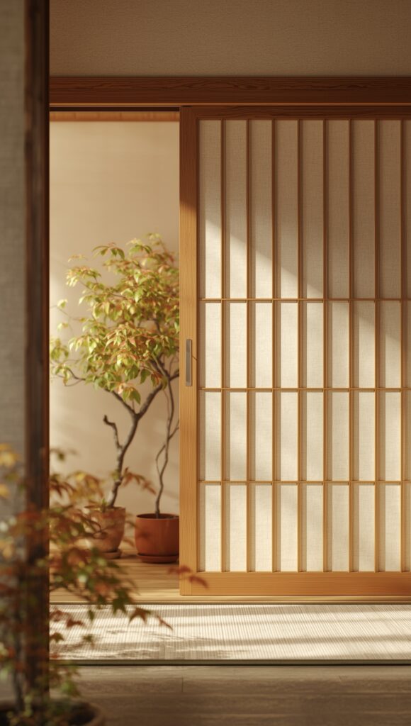 Minimalist yet luxurious, these doors use wooden grids and translucent panels (modern versions use reinforced rice paper or glass) to create a peaceful aesthetic.