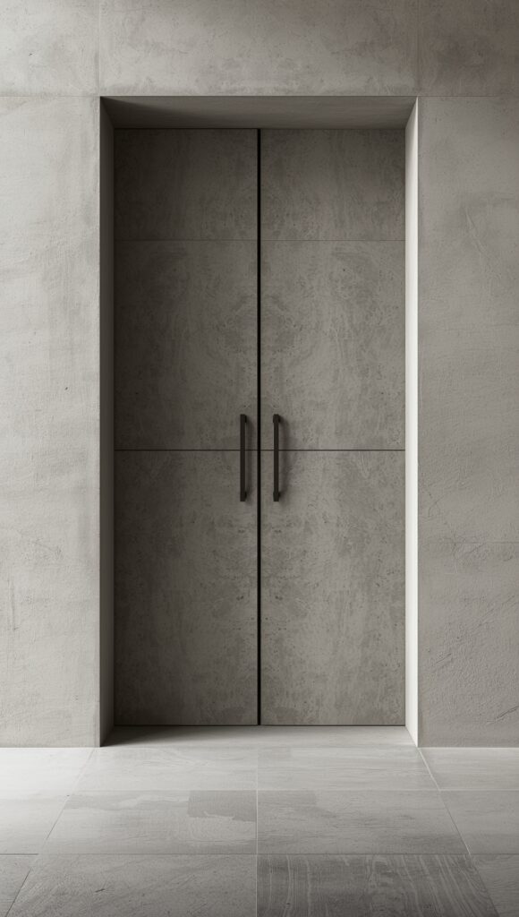 6. Minimalist Concrete Doors with Hidden Handles