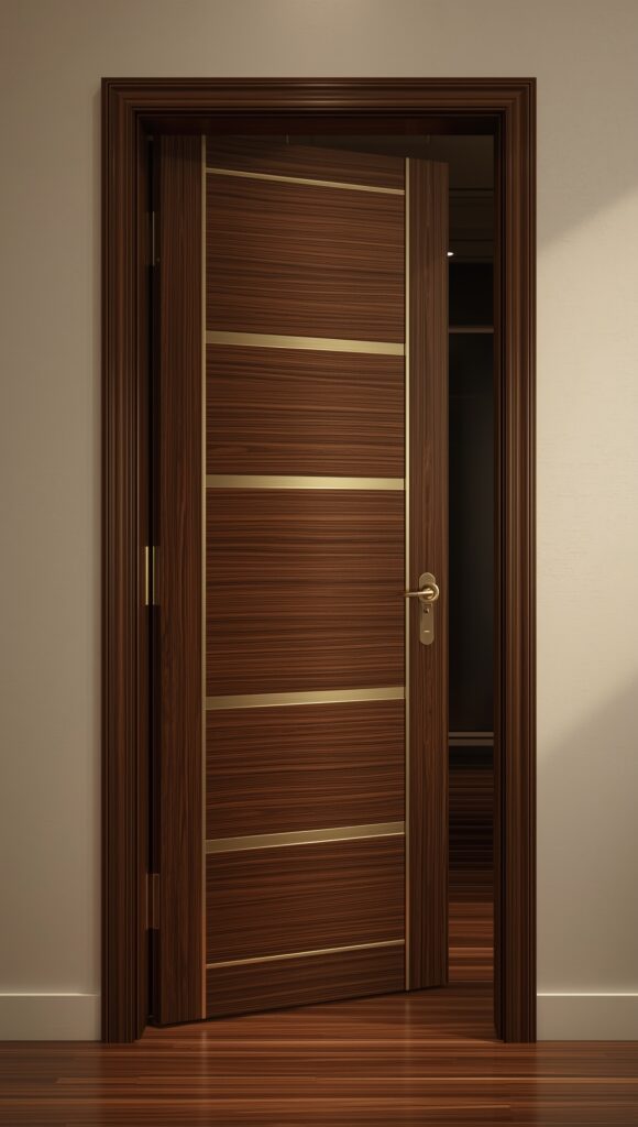 Pivot doors offer a dramatic entrance by rotating on a vertical axis, making them ideal for modern, high-ceilinged homes. When paired with sleek wooden finishes and brass inlays, these doors exude understated glamour and functionality.