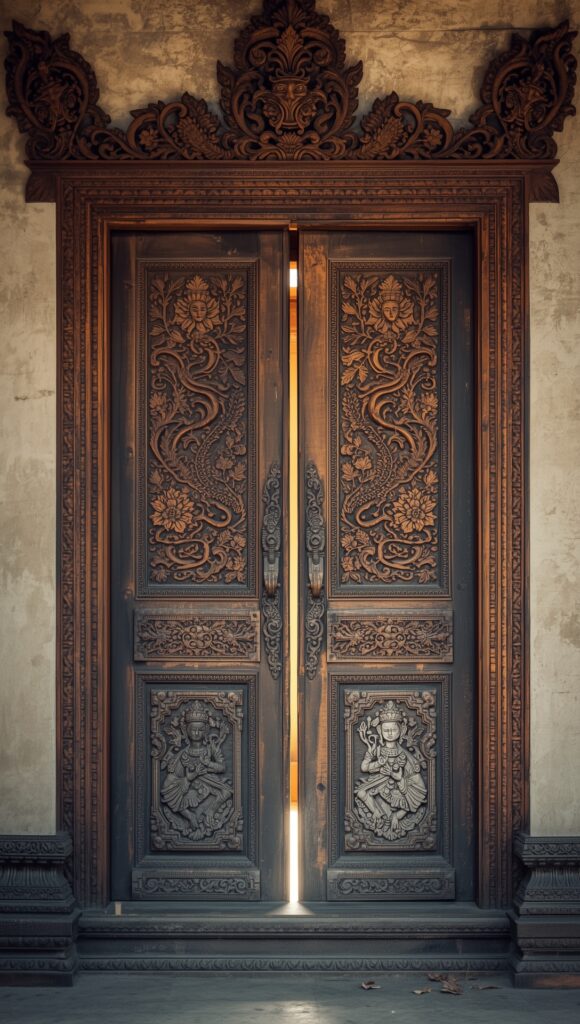 Bringing spirituality and exotic craftsmanship into the picture, Balinese doors often feature symbolic carvings and vibrant colors. Ideal for villas and tropical homes.