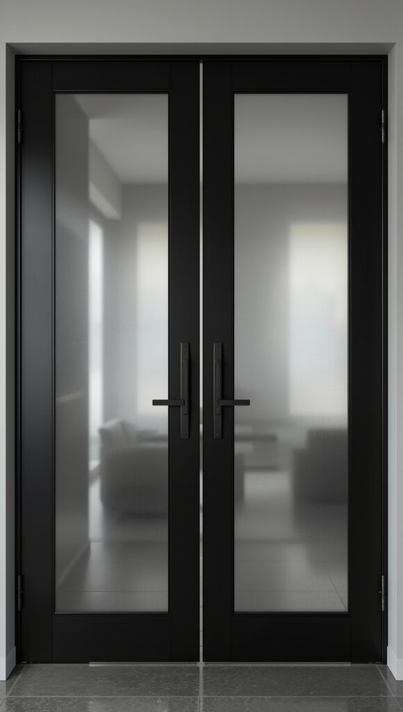 4. Matte Black Steel Doors with Frosted Glass